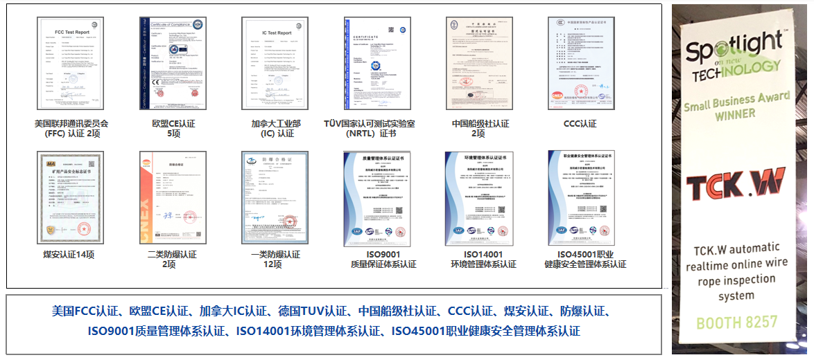 TCK.W magnetic memory ai weak magnetic monitoring technology for steel wire ropes has won numerous technical innovation awards, including the OTC Spotlight on New Technology Award at the Offshore Technology Conference (2018), the Top Excellence Award at the National Disruptive Technology Innovation Contest by the Ministry of Science and Technology of China (2022), the Silver Medal at the 49th Geneva International Exhibition of Inventions (2024), and the Innovation Project Award at the World Internet of Things Convention (2024).