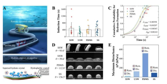 Based on this prevention philosophy, the Dalian University of Technology Hydrate Flow Assurance Team adopted hydrophobic surfaces as a passive control method and successfully developed a novel functional material with anti-hydrate deposition properties. They innovatively proposed the concept of "moderate hydrophobicity" — achieving easy hydrate removal by tuning surface chemistry rather than physical structure while maintaining relative surface smoothness.