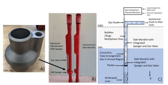 The team from the Department of Mechanical, Materials, and Aerospace Engineering at West Virginia University brought the problem into the laboratory. They designed and 3D-printed a device called a gas ejector, featuring micro-ejectors that disperse compressed gas into the geothermal fluid in the form of tiny bubbles. Through more than 100 scaled-up experiments and advanced numerical models, they determined the optimal design parameters: a distributor with 51 small holes and a carefully designed internal channel (Venturi tube) with a diameter approximately 95% of the fluid pipe diameter. The optimized distributor produces smaller, more uniform bubbles, increasing fluid extraction efficiency by about 24% compared to traditional methods without the distributor.