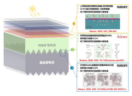 Previously, the LONGi Green Energy R&D team achieved multiple results in crystalline silicon-perovskite tandem solar cells. In September 2024, a paper published by the team in Nature showed that they had raised the efficiency of crystalline silicon-perovskite tandem cells to 33.9%, marking the first experimental demonstration that double-junction tandem solar cell efficiency exceeds the single-junction Shockley-Queisser (S-Q) theoretical efficiency limit—a milestone achievement.