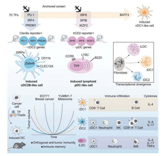 This study is the first to map a systematic blueprint of dendritic cell development, revealing the key mechanisms by which transcription factors open different regions of the genome during the early stages of reprogramming. The research found that different factor combinations determine the fate of cells differentiating into various dendritic cell subtypes by activating specific gene expression pathways. This cell reprogramming technology is expected to address the challenge of insufficient patient response rates in current immunotherapy.