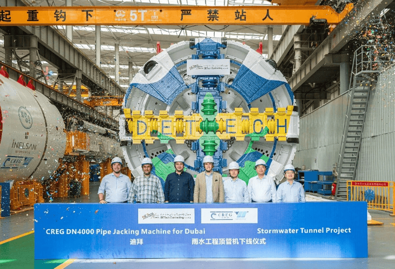 On April 20, a variable-diameter circular pipe jacking machine, customized by China Railway Engineering Equipment Group Co., Ltd. for Dubai's rainwater drainage project, rolled offline in Zhengzhou, Henan Province, China, attended by representatives of the client from the Middle East. The equipment is planned to be used in the construction of Dubai's largest unified rainwater collection system project.