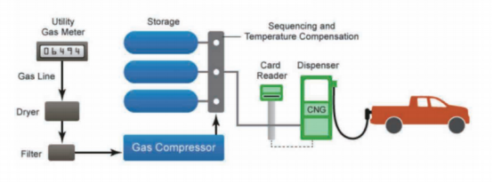 Building a CNG station for a retail application or a fleet requires calculating the right combination of pressure and storage needed for the types of vehicles being fueled. Making the right choices about the size of the compressor and the amount of storage at the station will impact the cost of fuel and range for vehicles.