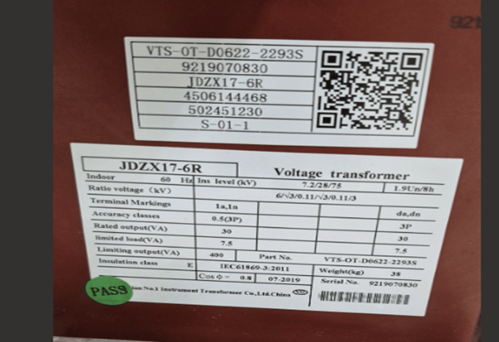 Item: Voltage Transformer JDZX17-6R 60 Hz