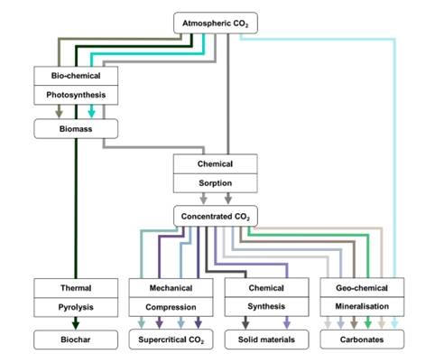 Commonly, only a few CDR options are considered: direct air carbon capture and sequestration (DACCS), bioenergy with carbon capture and sequestration (BECCS), enhanced weathering, afforestation and reforestation, biochar, and soil carbon sequestration. The problem is that possible technical solutions are more diverse, and a broader investigation into technologies is required.