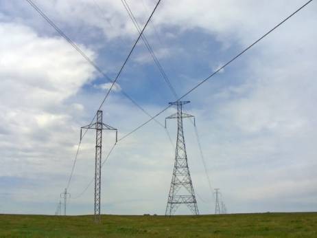 A pair of high-voltage DC (HVDC) transmission lines cross in North Dakota.