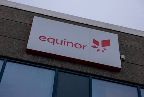The logo of Equinor is set up at the entrance of a building at Western Europe's largest liquefied natural gas plant Hammerfest LNG in Hammerfest, Norway, March 14, 2024.