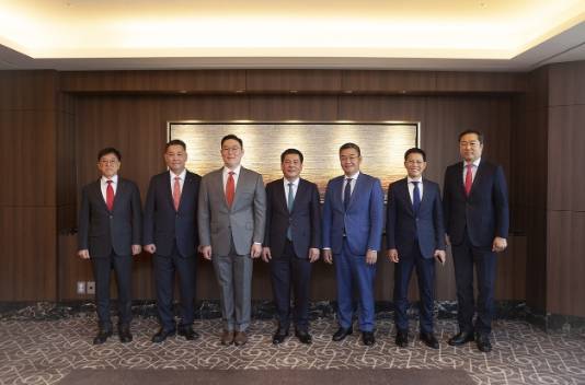 (From left) LS Cable & System Vice President Kim Hyung-won, LS Eco Energy CEO Lee Sang-ho, LS Cable & System CEO Koo Bon-kyu, Vietnam’s Minister of Industry and Trade Nguyen Hong Dien, Vietnam Oil and Gas Group Vice President Le Manh Cuong, PetroVietnam Technical Services Corporation President Tran Ho Bac and LS Marine Solutions CEO Kim Byeong-ok pose for a photo after a meeting at a Seoul hotel on Tuesday.