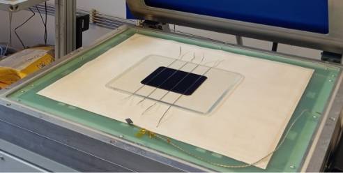 To verify behavior in a realistic module configuration, the team fabricated crystalline silicon (c-Si) devices measuring 30 cm × 30 cm. The composition of the mini-modules was as follows: glass on the front, half-cut c-Si cells, PET film on the back side, plus one of three encapsulants under investigation, which were applied according to the manufacturer’s instructions.