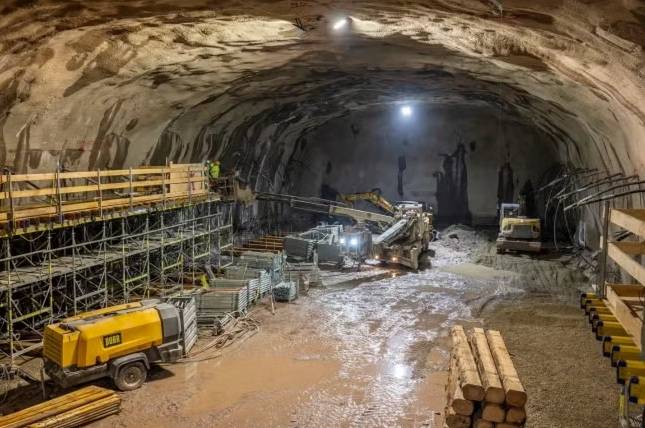 In mid-February, the construction team successfully lifted the crane into position, enabling the next phase of the project to proceed. Tunnel work within the cavern resumed at the end of February.