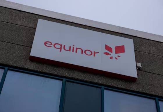 The logo of Equinor is set up at the entrance of a building at Western Europe's largest liquefied natural gas plant Hammerfest LNG in Hammerfest, Norway, March 14, 2024.