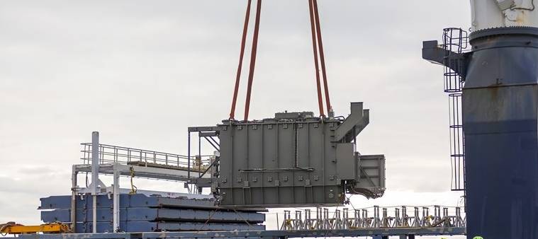 The transformers, each weighing around 59 tonnes, are key electrical components in the ongoing Gremista electricity connection project.