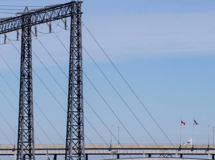 Photo taken on March 10, 2025 shows power lines leading from Sir Adam Beck Generating Stations of Canada in Niagara Falls, Ontario, Canada. Canada's Ontario government on Monday officially applied a 25 percent surcharge on all electricity exports to three U.S. states.