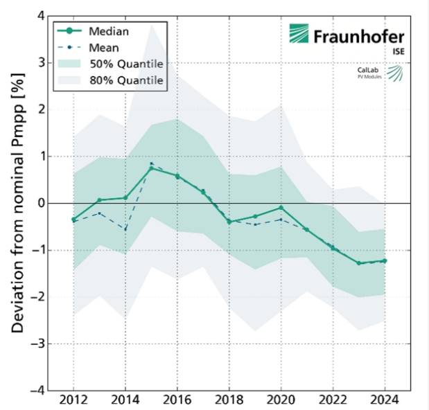 Daniel Phillip, head of the Department Module Characterization and Reliability at Fraunhofer ISE, says a slight trend reversal was observed in 2024, but the average result still showed a power reduction of 1.2% against the manufacturers' specifications.