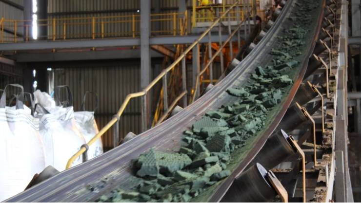 A conveyor belt moves raw cobalt for processing at the Etoile mine, operated by Chemaf Sarl, in Katanga province near Lubumbashi, the Democratic Republic of Congo, on Wednesday, Dec. 22, 2021. Along a 250-mile highway which cuts through central Africa, thousands of flatbed trucks haul sheets of copper and sacks of cobalt hydroxide, essential for electric cars and other 21st century technologies for which drivers must pay steep tolls, as much as $900 for a round trip.