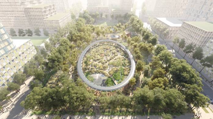 Artist’s impression of the two-hectare Central Park, which will sit on top of the Bradfield Metro Station, set to be the terminus of the 23km Western Sydney Airport metro line, now under construction