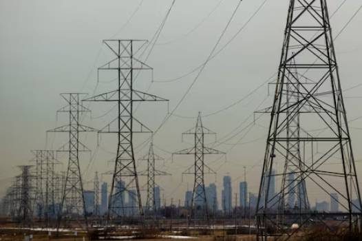 Power lines stretch towards the city of Mississauga visible in the background in Oakville, Ontario, Canada, March 13, 2025.