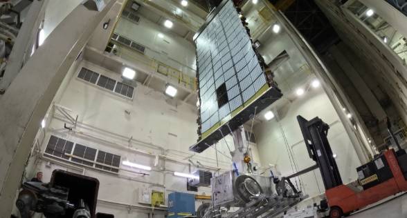 Lockheed Martin's Vertical Solar Array Technology (VSAT) being tested in a high bay