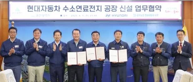 Wedoany.com Report-Apr. 11, Hyundai Motor Company has signed a Memorandum of Understanding (MOU) with Ulsan City to establish a new hydrogen fuel cell plant, advancing its commitment to eco-friendly vehicle production. The agreement was formalized on April 9 at Ulsan City Hall by Ulsan Mayor Kim Doo-gyeom, Hyundai Motor CEO Lee Dong-seok, and Hyundai Motor Branch Director Moon Yong-moon of the Korean Metal Workers’ Union, reflecting a shared vision for sustainable development.