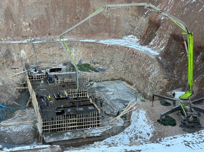 Key milestones have been achieved, including the completion of earthworks for the 110 kV open distribution device (ODD) area and the grounding of the substation. Additionally, construction and installation of the main water intake unit are finished, and the pressure pipeline installation is complete. The HPP building is under active construction, with concreting of levels I-IV finalized up to a height of 727.9 meters. Work on the station building is set to continue throughout this month.