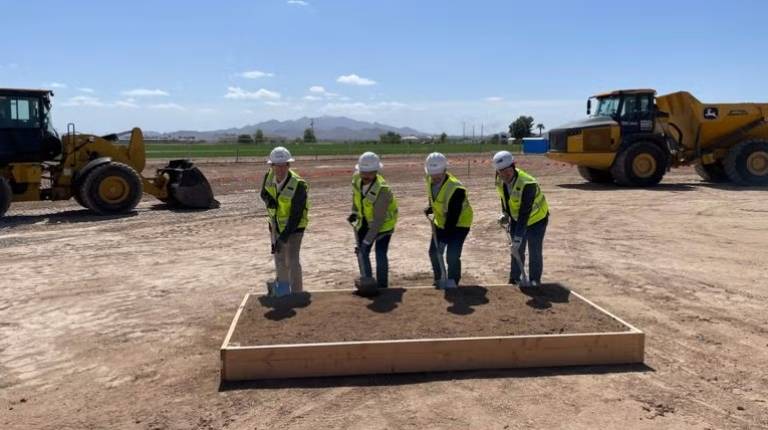 The groundbreaking on Justice energy storage occurred on 4.17.2025 with attendees from Strata, Mortenson, APS, and Tesla.