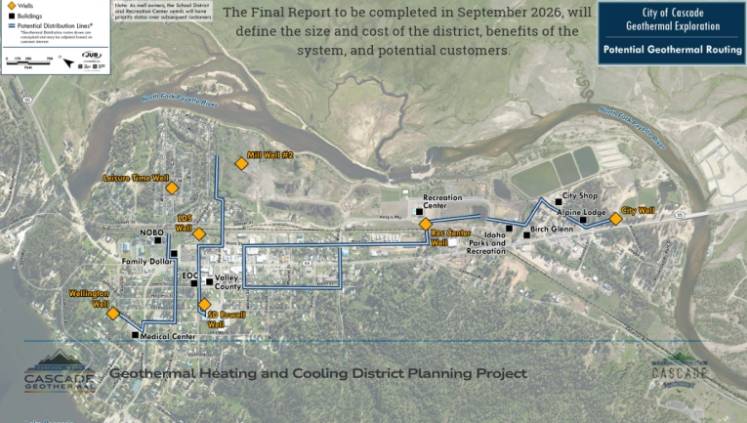 Cascade plans to utilize seven existing geothermal wells to supply the proposed network. Two of these wells have heated Cascade Schools and the Cascade Aquatic & Recreation Center for over 15 years, while the remaining wells, one city-owned and the others privately owned, are currently unused. The study will assess the wells’ capacities and gauge interest from potential customers to inform the system’s design and cost estimates.