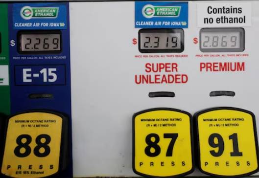 Choices at the gas pump including ethanol or no ethanol gas are seen in Des Moines, Iowa, U.S., January 29, 2020.