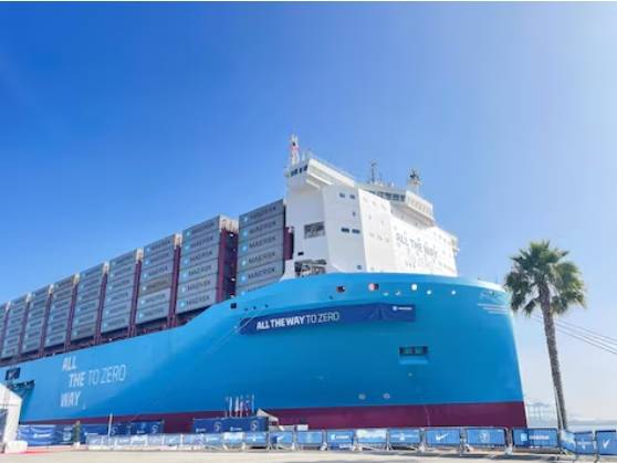 The Alette Maersk, a green methanol-powered ship, is seen docket at the Port of Los Angeles, in Los Angeles, California, U.S., August 27, 2024.
