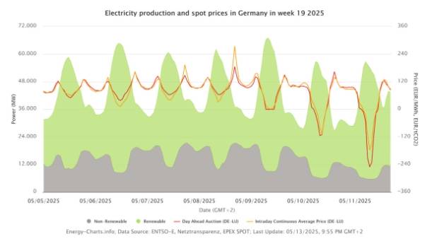 On May 11, the day-ahead price peaked at minus €250.32 per megawatt-hour.