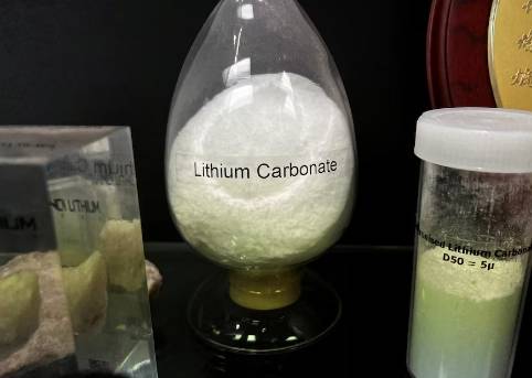A display shows lithium raw materials mined in Western Australia, which are used in the production of batteries for electric vehicles, in Perth, Australia, May 24, 2024.