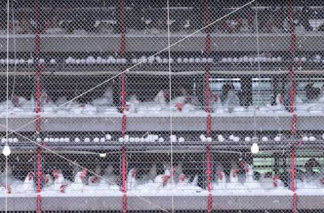 Chickens sit at a poultry farm as Brazil's egg exports soar amid stronger U.S. demand, in Taquari, Rio Grande do Sul, Brazil, March 12, 2025.