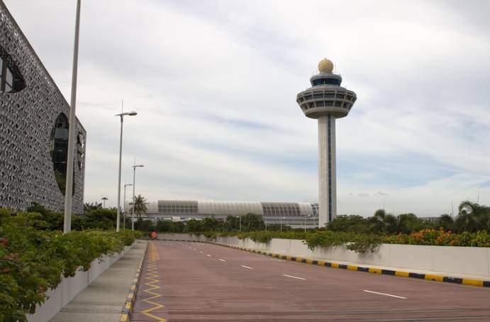 An air traffic control tower at Changi Airport