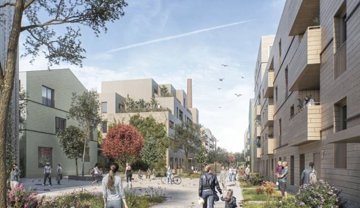 The district, located on the site of the former Bauer & Schaurte screw factory, will include approximately 450 residential units, with 33% designated as publicly subsidized apartments. Additional amenities will include daycare centers, co-working spaces, a hotel, cultural and dining facilities, and other social infrastructure to support a vibrant community.