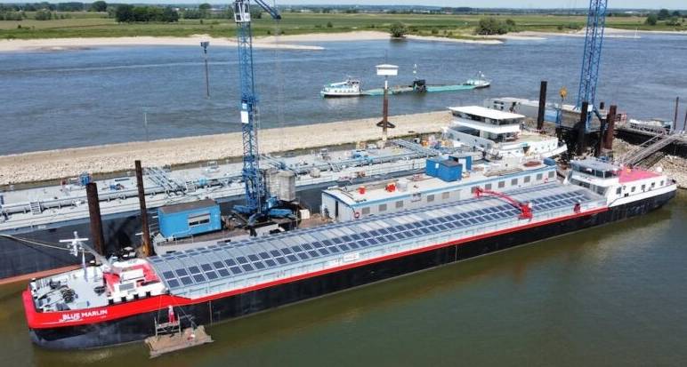 Wedoany.com Report-Jul. 8, Dutch solar technology company Wattlab and German inland shipping company HGK Shipping have introduced the Blue Marlin, the world’s first inland vessel to use solar power for propulsion. Unveiled recently, this hybrid vessel marks a significant advancement in sustainable marine technology, integrating solar energy for both onboard systems and high-voltage propulsion.
