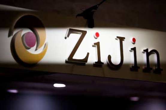 A Zijin Mining sign is illuminated at the company's booth, at the Prospectors and Developers Association of Canada (PDAC) annual mining conference in Toronto, Ontario, Canada March 3, 2025.