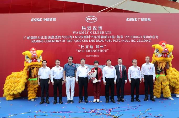 Wedoany.com Report-Jul. 18, On July 16, BYD named and delivered its seventh roll-on/roll-off (ro-ro) vessel, BYD ZHENG ZHOU, in Guangzhou, as shared on the Zhengzhou Airport Economy Zone’s WeChat account. The ship will soon arrive at Xiaomo Port in the Shenshan Special Cooperation Zone for its inaugural vehicle-loading journey.