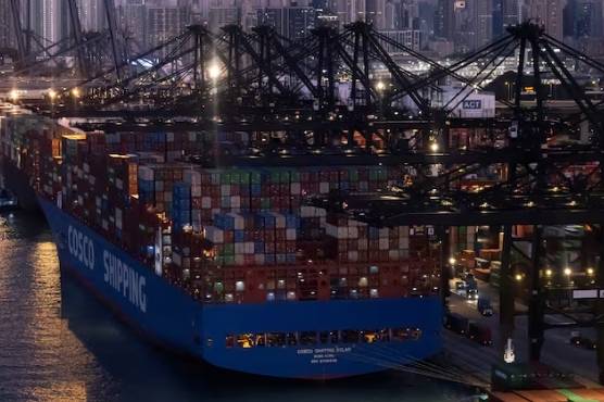 A general view of the container terminals and a Cosco Shipping vessel at Kwai Chung district in Hong Kong, China November 28, 2024.