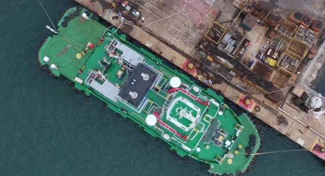 The tugboat features an independently developed ammonia dual-fuel engine and a specialized fuel supply system, achieving an ammonia substitution rate of up to 91%. This significantly reduces dependence on traditional fossil fuels and lowers carbon emissions during operations. The vessel has been certified as an “Ammonia Fuel Tug” by the China Classification Society.
