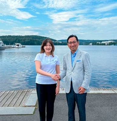 Haruka Arai, Executive Director of Cefmof (left), and Kenji Takeda, Executive Officer of Asahi Kasei (right), by Lake Jyväsjärvi.