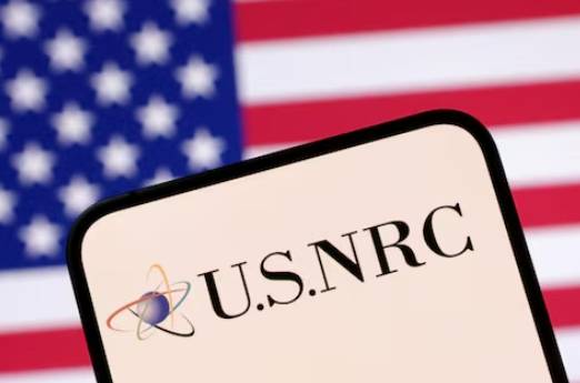 United States Nuclear Regulatory Commission logo and U.S. flag are seen in this illustration created on April 23, 2025.