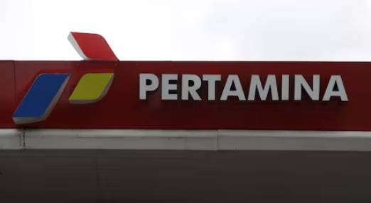 A sign of the state-owned Pertamina seen at a petrol station in Jakarta, Indonesia, February 17, 2016.