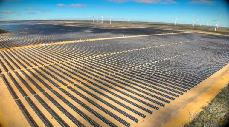 Casa dos Ventos’ Babilônia Sul hybrid solar-wind power plant in Bahia, Brazil, featuring NX Horizon smart solar tracker.