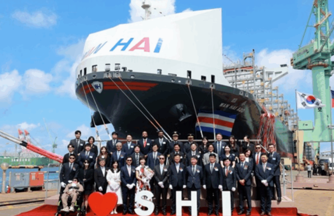 Wedoany.com Report-Aug. 16, On August 14, 2025, Taiwan’s Wan Hai Lines named its new energy-efficient containership, WAN HAI A20, at Samsung Heavy Industries’ Geoje shipyard in South Korea. The vessel, now delivered, will operate on the Asia to South America (West Coast) “ASA” service, supporting global shipping routes.