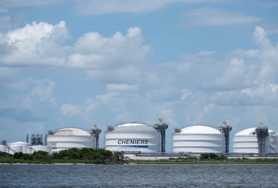 A view of Cheniere's Sabine Pass LNG facility located in Cameron Parish, Louisiana, as seen from Port Arthur, Texas, U.S., June 23, 2025.