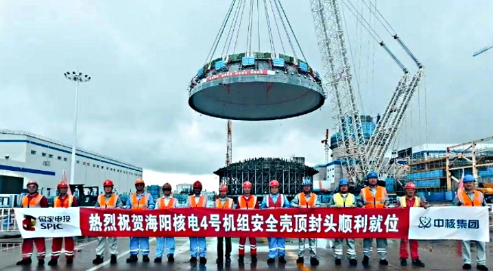 Wedoany.com Report-Sept. 10, The installation of the uppermost section of the steel containment vessel has been completed at unit 4 of the Haiyang nuclear power plant in Shandong province, China. This marks a significant milestone in the construction of the CAP1000 reactor, which is the Chinese version of the Westinghouse AP1000.
