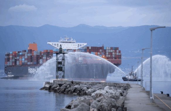 Wedoany.com Report-Sept. 12, On September 10, the Rijeka Gateway, a joint venture between Denmark-based A.P. Moller-Maersk’s APM Terminals and Croatian investor Energia Naturalis (ENNA Group), officially entered its operational phase with the arrival of the first commercial vessel, the Al Jasrah. The Liberia-flagged containership, measuring 368 meters in length and 51 meters in width, berthed at the terminal, marking the start of operations. Owned by Hapag-Lloyd, the nine-year-old vessel arrived from Port Said, Egypt, serving the Asia–Europe route.