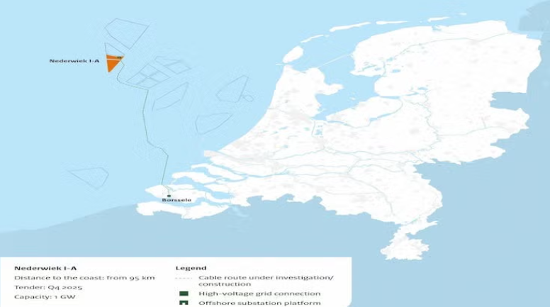 Wedoany.com Report-Oct. 22, The Dutch government has launched a tender for the permit to develop and operate a 1GW offshore wind farm at the Nederwiek I-A site in the North Sea. Covering approximately 149.2 square kilometers, the site lies about 95 kilometers off the west coast of Texel. The initiative marks another step in the Netherlands’ strategy to expand renewable energy capacity through large-scale offshore wind development.