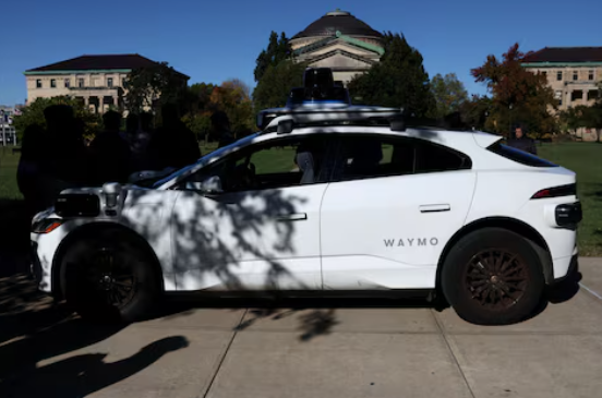 A Waymo driverless vehicle at Bronx Community College in the Bronx Borough of New York City , U.S., October 16, 2025.