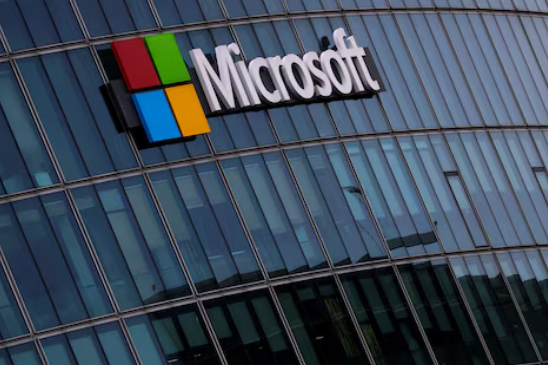 A view shows a Microsoft logo at Microsoft offices in Issy-les-Moulineaux near Paris, France, March 21, 2025.