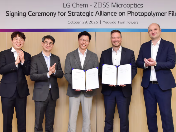 The agreement was formalized at LG Chem’s Yeouido Twin Towers, attended by senior representatives from both companies, including Stephan Höfer, Senior Vice President and Head of Business Development and Marketing at ZEISS Microoptics, Dr. Viktor Schütz, Vice President and Head of Partnership Management at ZEISS Microoptics, and Ko Kyung-deok, Vice President and Head of Electronics Materials Business Unit at LG Chem. Under this agreement, LG Chem will supply photopolymer films within the ZEISS Microoptics Enabling Ecosystem to support their integration into automotive windshields. The first mass production for automotive manufacturers is targeted to begin in 2029.
